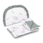 Táto krásna súprava vankúšika a dečky je vyrobená z jemného mušelínu a 100% bavlny, vďaka čomu zaistí vášmu dieťatku maximálne pohodlie.
