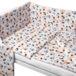 Materiál: Obliečky – 100% bavlna. Mantinel: Vrchná časť 100% bavlna, výplň duté vlákno – hypoalergénne.