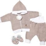 3-dielna súprava Hand made, pletený kabátik, kalhoty a topánky, béžová, veľ.68