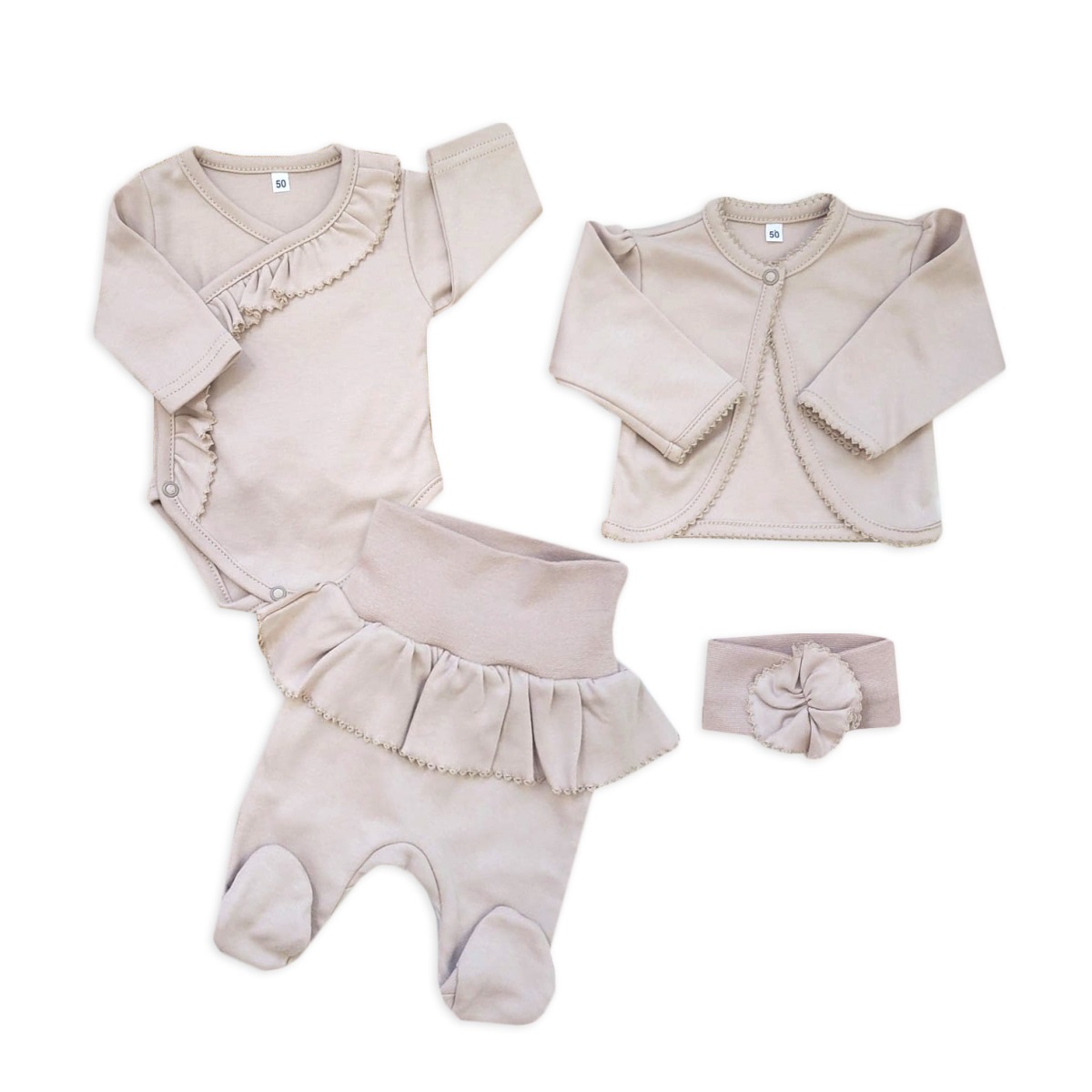 4-dielna bavlnená sada pre bábätko do pôrodnice, béžová, veľ. 62
