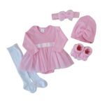 5-dielna súpravička sukničkobody, panč., čiapka, čelenka, topánky – růžová, Veľ. 74