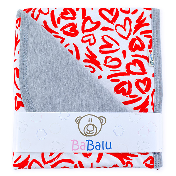 BaBalu: Obojstranná deka 80x90cm Srdiečko (šedá/červená)
