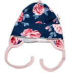 Baby Bavlnená čiapočka s uškami na zaväzovanie – Ruže, pudrová/granát, veľ. 62/68