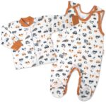 Baby Nellys 2 – dielna sada, bavlnené dupačky s košieľkou Auta, sivá, veľ. 56