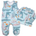Baby Nellys 2-dielna sada, bavlnené dupačky s košieľkou Krokodýl Eda, mint, veľ. 62