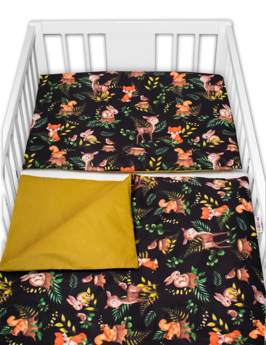 Baby Nellys 2-dielne bavlnené obliečky – Baby Friends, čierna/zelená, 135×100 cm