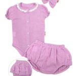 Baby Nellys 3-dielna mušelínová súpravička, body, kraťasky+čelenka GIRL, lila, veľ. 74