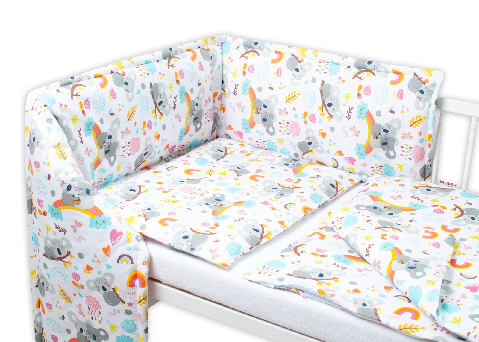 Baby Nellys 3-dielna sada Mantinel s obliečkami – Koala a dúha, biela, 135×100 cm