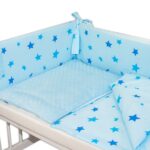 Baby Nellys 3- dielná sada mantinel s obliečkami Minky hviezdičky modré – sv. modrá