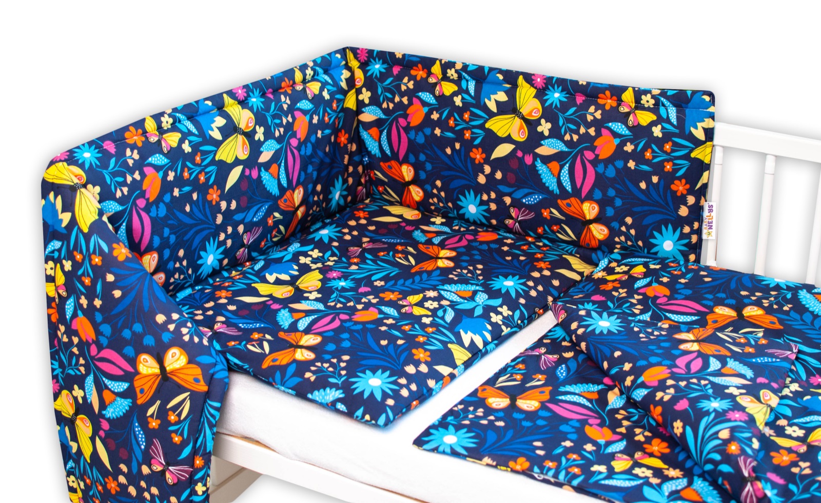 120×90 – obliečky na perinku 120x90cm, obliečky na vankúšik 40×60 cm, mantinel 60x60x60cm – na postieľku 120x60cm.