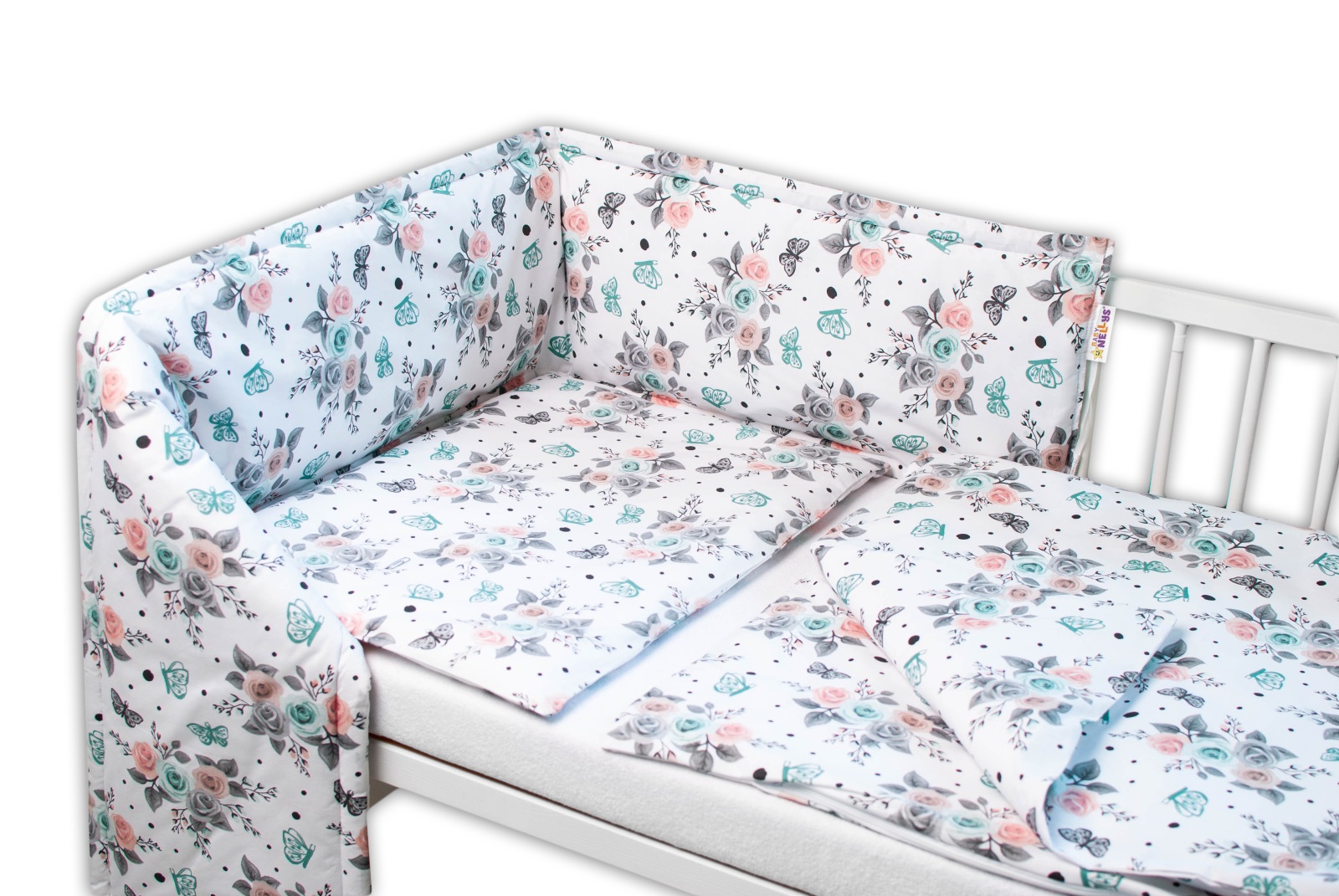 Baby Nellys 3-dielna sada Mantinel s obliečkami – Ružičky, biele