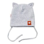 Baby Nellys Bavlnená dvojvrstvová čiapka s uškami na zaväzovanie, FOX – sivý melírok