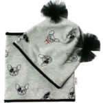 Baby Nellys Bavlnená sada čiapočka s tutu a nákrčník Psíci – šedá, čierna, vel. 110