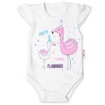 Baby Nellys Bavlnené dojčenské body, kr. rukáv, Flamingo – biele, veľ. 86