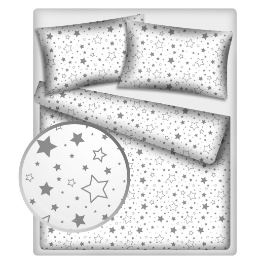 Baby Nellys Bavlnené obliečky 140 x 200/70 x 90 – Sivé hviezdy a hviezdičky
