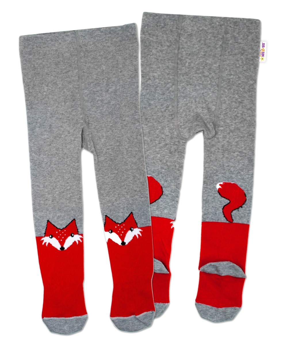 Baby Nellys Bavlnené pančucháče Líštička – sivo/červené, veľ. 104/110