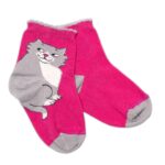 Baby Nellys Bavlnené ponožky Kocúr – malinové, veľ. 122/128
