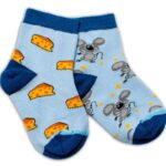 Baby Nellys Bavlnené veselé ponožky Myška a syr – svetlo modré, veľ. 122/128