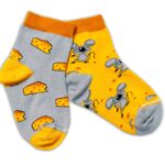Baby Nellys Bavlnené veselé ponožky Myška a syr – žltá / sivá, veľ. 122/128