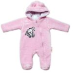 Baby Nellys Chlpáčkový overálek s kapucňou, Cute Bunny – svetlo ružový, veľ. 68