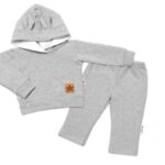 BABY NELLYS Detská tepláková súprava s kapucňou a uškami, sivá, veľ. 80