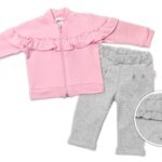 BABY NELLYS Detská tepláková súprava s volánikom SWEET LADY – ružová, šedá