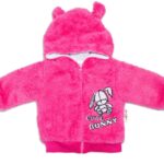 Baby Nellys Dojčenská chlupáčková bundička s kapucňou Cute Bunny – malinová, veľ. 62