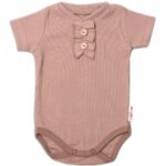 Baby Nellys Dojčenské rebrované body s gombíkmi kr. rukáv, Girl – hnedé, veľ. 68