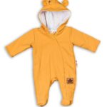 Baby Nellys Dojčenský teplákový overal s kapucňou – horčicový, veľ. 86
