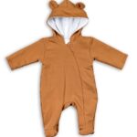 Baby Nellys Dojčenský teplákový overal s kapucňou – karamelový, veľ. 86