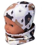 Baby Nellys Dvojvrstvová čiapka + komínček Medvede, hnedá/smotanová, veľ. 92/98