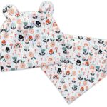 Baby Nellys Dvojvrstvová čiapka s uškami + šatka Palouček, smatanová, veľ. 80/92