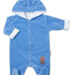 Dvojvrstvový teplejší velúrový overálek podšitý bavlnenou látkou so štýlovou kapucňou ozdobenou ušami. Celorozpínací na cvočky, čo umožňuje ľahké prezliekanie a prebaľovanie.