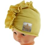 Baby Nellys Jarná/jesenná bavlnená čiapka – turban, horčicová, vel. 80/86