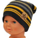 BABY NELLYS: Jarná/jesenná čiapka (grafit/sivá/žltá)