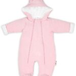 Baby Nellys ® Kombinézka s dvojitým zapínaním, s kapucňou a uškami, sv. růžová