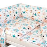 135×100 – obliečky na perinku 135x100cm, obliečky na vankúšik 40×60 cm, mantinel 60x60x60cm – na postieľku 120x60cm.