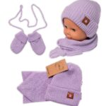 Baby Nellys Pletená čiapka so šálom a rukavičky 3v1, STAR – fialová