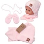 Baby Nellys Pletená čiapka so šálom a rukavičky 3v1, STAR – sv. růžová, 68/74