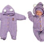 Baby Nellys Pletená kombinéza/overal LUX STAR s kožúškom – dvojvrstvová, fialová, veľ. 74
