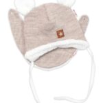 Baby Nellys Pletená zimná čiapka s kožúškom a šatkou Star, béžová