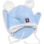 Baby Nellys Pletená zimná čiapka s kožúškom a šatkou Star, modrá