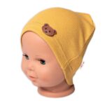 Baby Nellys Rebrovaná čiapka Macko – horčicová, veľ. 80/86