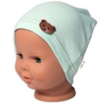 Baby Nellys Rebrovaná čiapka Macko – mätová, veľ. 92/98