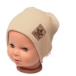 Baby Nellys Rebrovaná dvojvrstvová čiapka s lemom – béžová, veľ. 80/86
