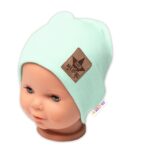 Baby Nellys Rebrovaná dvojvrstvová čiapka s lemom – mätová, veľ. 80/86