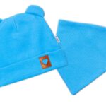 Baby Nellys Rebrovaná dvojvrstvová čiapka s uškami + šatka TEDDY – modrá, 80/86