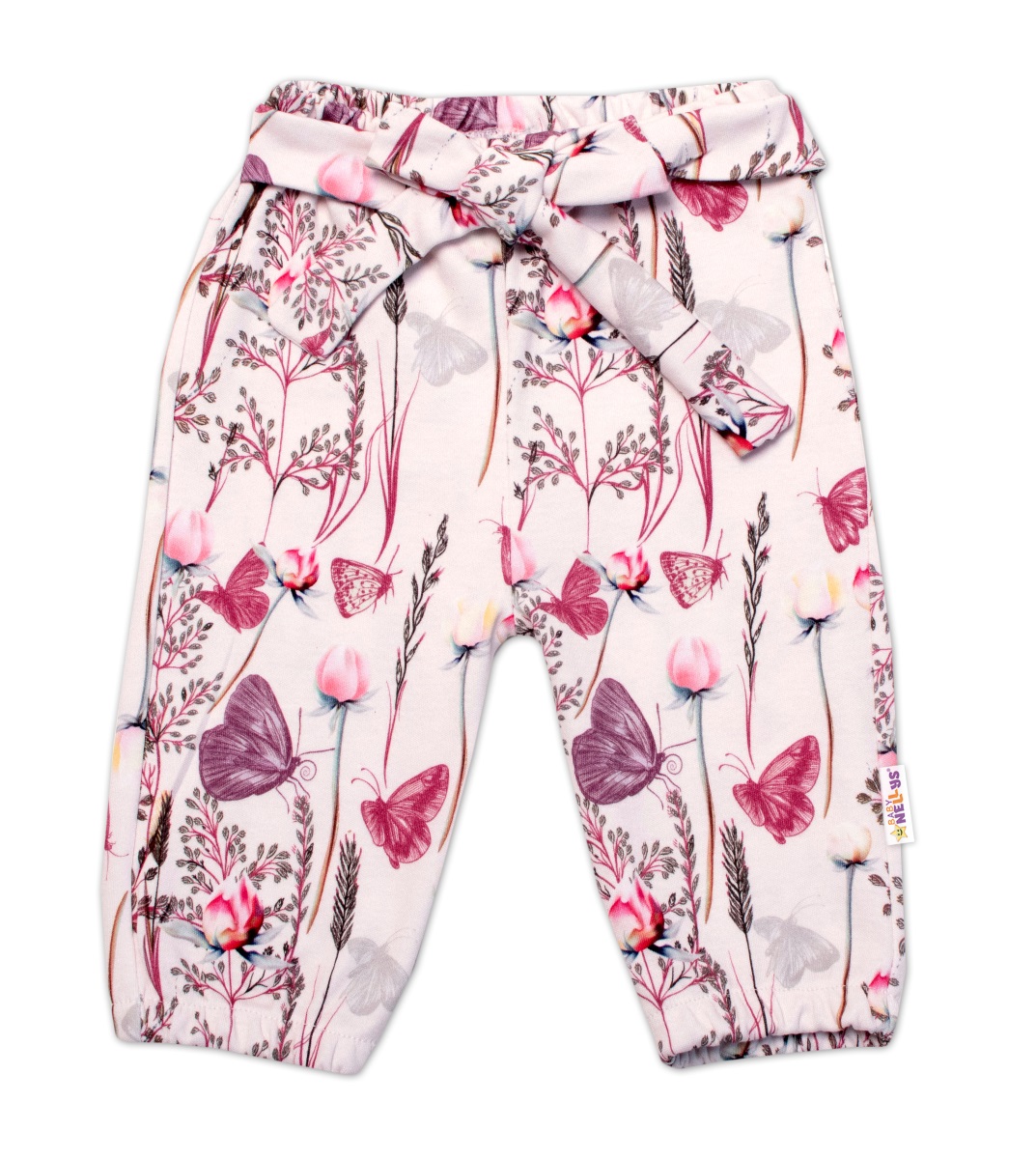 Baby Nellys Tepláčiky s ozdobným pásikom Motýliky – ružová, veľ. 68