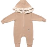 Baby Nellys Teplákový overal s kapucňou a volánikom, New Bunny – cappuccino, veľ. 62