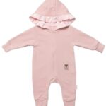 Baby Nellys Teplákový overal s kapucňou a volánikom, New Bunny – púdrová, veľ. 86